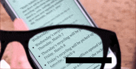 Miras hacia abajo para leer: perfecto. Miras hacia arriba a cualquier otra cosa: todo borroso.